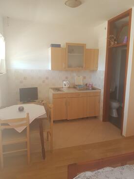Monolocale può accogliere 2 ospiti. I letti sono disposti nelle camere da letto che sono 1, su 23m2. Gli ospiti hanno a disposizione il proprio terrazzo per godere nelle calde serate estive. Dal monolocale si gode di una vista sul mare. Si può preparare il cibo utilizzando il barbecue comune. Nell'unità di alloggio si possono portare gli animali domestici senza alcun pagamento supplementare.