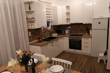 Appartamento può accogliere 6 ospiti. I letti sono disposti nelle camere da letto che sono 2, e nella camera di soggiorno, su 50m2. Gli ospiti hanno a disposizione il proprio balcone per godere delle calde serate estive. Dall'appartamento si gode di una vista sul mare.