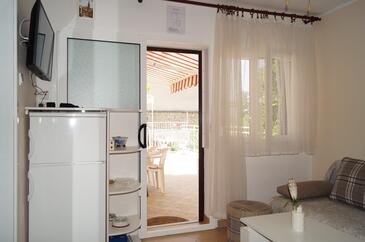 Appartamento può accogliere 4 ospiti. I letti sono disposti nelle camere da letto che sono 2, su 35m2. Gli ospiti hanno a disposizione il proprio terrazzo per godere nelle calde serate estive. Dall'appartamento si gode di una vista sul mare. Si può preparare il cibo utilizzando il barbecue comune.