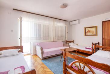 Appartamento può accogliere 6 ospiti. I letti sono disposti nelle camere da letto che sono 2, su 51m2. Gli ospiti hanno a disposizione il proprio balcone per godere delle calde serate estive. Dall'appartamento si gode di una vista sul mare. Per il piacere totale e il relax c'è il barbecue privato solo per gli ospiti di quest'alloggio.