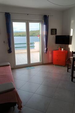 Appartamento può accogliere 4 ospiti. I letti sono disposti nelle camere da letto che sono 2, su 71m2. Gli ospiti hanno a disposizione il proprio terrazzo per godere nelle calde serate estive. Dall'appartamento si gode di una vista sul mare. Si può preparare il cibo utilizzando il barbecue comune.