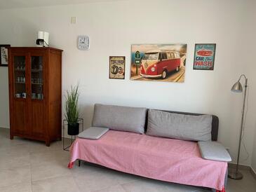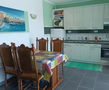 Appartamento può accogliere 4 ospiti. I letti sono disposti nelle camere da letto che sono 2, su 71m2. Gli ospiti hanno a disposizione il proprio terrazzo per godere nelle calde serate estive. Dall'appartamento si gode di una vista sul mare. Si può preparare il cibo utilizzando il barbecue comune.