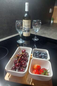 Appartamento può accogliere 4 ospiti. I letti sono disposti nelle camere da letto che sono 2, su 52m2. Gli ospiti hanno a disposizione il proprio terrazzo per godere nelle calde serate estive. Si può preparare il cibo utilizzando il barbecue comune.