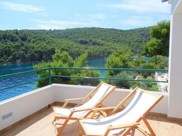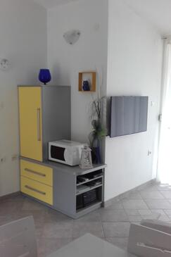 Appartamento può accogliere 6 ospiti. I letti sono disposti nelle camere da letto che sono 3, su 53m2. Gli ospiti hanno a disposizione il proprio terrazzo per godere nelle calde serate estive. Dall'appartamento si gode di una vista sul mare. Si può preparare il cibo utilizzando il barbecue comune.