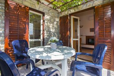 Appartamento può accogliere 5 ospiti. I letti sono disposti nelle camere da letto che sono 2, e nella camera di soggiorno, su 47m2. Gli ospiti hanno a disposizione il proprio terrazzo per godere nelle calde serate estive. Dall'appartamento si gode di una vista sul mare. Si può preparare il cibo utilizzando il barbecue comune.