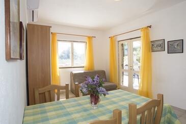 Appartamento può accogliere 5 ospiti. I letti sono disposti nelle camere da letto che sono 2, e nella camera di soggiorno, su 47m2. Gli ospiti hanno a disposizione il proprio terrazzo per godere nelle calde serate estive. Dall'appartamento si gode di una vista sul mare. Si può preparare il cibo utilizzando il barbecue comune.