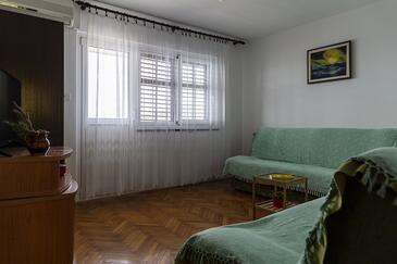 Appartamento può accogliere 6 ospiti. I letti sono disposti nelle camere da letto che sono 2, e nella camera di soggiorno, su 53m2. Gli ospiti hanno a disposizione il proprio balcone per godere delle calde serate estive. Dall'appartamento si gode di una vista sul mare. Si può preparare il cibo utilizzando il barbecue comune.