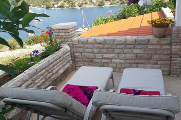Appartamento può accogliere 4 ospiti. I letti sono disposti nelle camere da letto che sono 2, su 45m2. Gli ospiti hanno a disposizione il proprio terrazzo per godere nelle calde serate estive. Dall'appartamento si gode di una vista sul mare. Si può preparare il cibo utilizzando il barbecue comune.