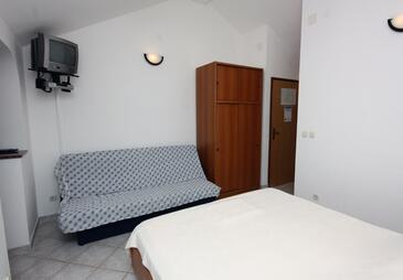 Monolocale può accogliere 2 ospiti. I letti sono disposti nelle camere da letto che sono 1, su 22m2. Gli ospiti hanno a disposizione il proprio terrazzo per godere nelle calde serate estive. Dal monolocale si gode di una vista sul mare. Si può preparare il cibo utilizzando il barbecue comune.