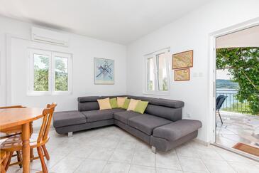 Appartamento può accogliere 5 ospiti. I letti sono disposti nelle camere da letto che sono 2, e nella camera di soggiorno, su 48m2. Gli ospiti hanno a disposizione il proprio terrazzo per godere nelle calde serate estive. Dall'appartamento si gode di una vista sul mare. Si può preparare il cibo utilizzando il barbecue comune.