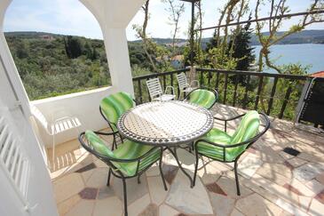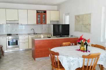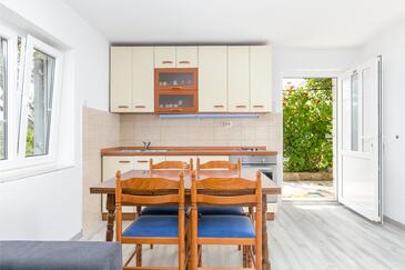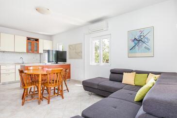 Appartamento può accogliere 5 ospiti. I letti sono disposti nelle camere da letto che sono 2, e nella camera di soggiorno, su 48m2. Gli ospiti hanno a disposizione il proprio terrazzo per godere nelle calde serate estive. Dall'appartamento si gode di una vista sul mare. Si può preparare il cibo utilizzando il barbecue comune.