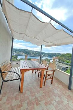 Appartamento può accogliere 4 ospiti. I letti sono disposti nelle camere da letto che sono 2, su 35m2. Gli ospiti hanno a disposizione il proprio terrazzo per godere nelle calde serate estive. Dall'appartamento si gode di una vista sul mare. Si può preparare il cibo utilizzando il barbecue comune.