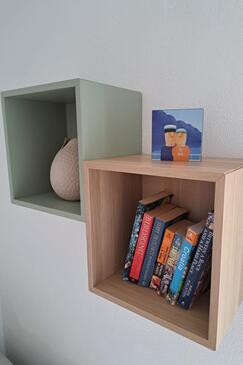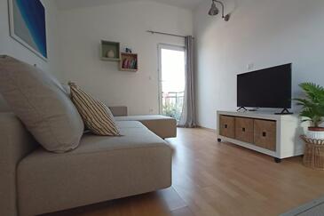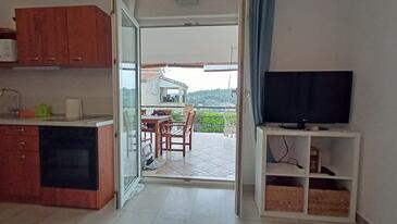 Appartamento può accogliere 4 ospiti. I letti sono disposti nelle camere da letto che sono 2, su 35m2. Gli ospiti hanno a disposizione il proprio terrazzo per godere nelle calde serate estive. Dall'appartamento si gode di una vista sul mare. Si può preparare il cibo utilizzando il barbecue comune.