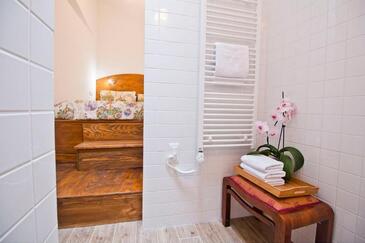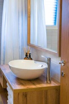 Casa può accogliere 6 ospiti. I letti sono disposti nelle camere da letto che sono 3, su 80m2. Gli ospiti hanno a disposizione il proprio terrazzo per godere nelle calde serate estive. Per il piacere totale e il relax c'è il barbecue privato solo per gli ospiti di quest'alloggio. Durante il soggiorno gli ospiti si possono rilassare nella piscina privata.