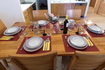 Casa può accogliere 6 ospiti. I letti sono disposti nelle camere da letto che sono 4, su 120m2. Gli ospiti hanno a disposizione il proprio terrazzo per godere nelle calde serate estive. Dalla casa si gode di una vista sul mare. Per il piacere totale e il relax c'è il barbecue privato solo per gli ospiti di quest'alloggio.