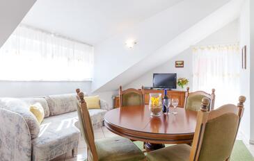 Appartamento può accogliere 6 ospiti. I letti sono disposti nelle camere da letto che sono 2, e nella camera di soggiorno, su 64m2. Gli ospiti hanno a disposizione il proprio terrazzo per godere nelle calde serate estive. Dall'appartamento si gode di una vista sul mare. Si può preparare il cibo utilizzando il barbecue comune.