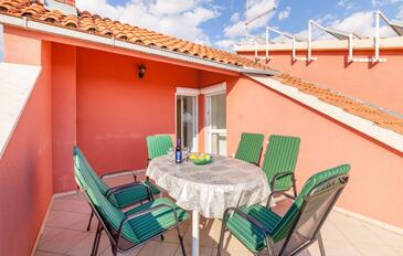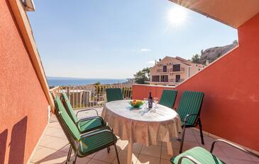 Appartamento può accogliere 6 ospiti. I letti sono disposti nelle camere da letto che sono 2, e nella camera di soggiorno, su 64m2. Gli ospiti hanno a disposizione il proprio terrazzo per godere nelle calde serate estive. Dall'appartamento si gode di una vista sul mare. Si può preparare il cibo utilizzando il barbecue comune.