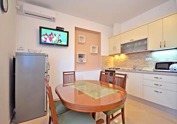 Appartamento può accogliere 4 ospiti. I letti sono disposti nelle camere da letto che sono 2, su 47m2. Gli ospiti hanno a disposizione il proprio terrazzo per godere nelle calde serate estive. Dall'appartamento si gode di una vista sul mare. Si può preparare il cibo utilizzando il barbecue comune.