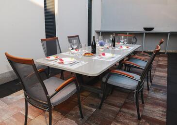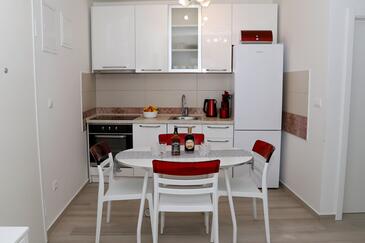 Appartamento può accogliere 4 ospiti. I letti sono disposti nelle camere da letto che sono 2, su 38m2. Gli ospiti hanno a disposizione il proprio terrazzo per godere nelle calde serate estive. Si può preparare il cibo utilizzando il barbecue comune.