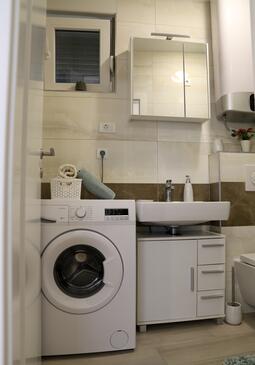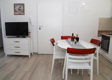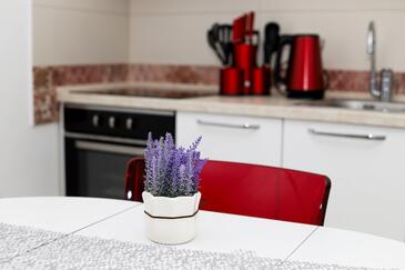 Appartamento può accogliere 4 ospiti. I letti sono disposti nelle camere da letto che sono 2, su 38m2. Gli ospiti hanno a disposizione il proprio terrazzo per godere nelle calde serate estive. Si può preparare il cibo utilizzando il barbecue comune.