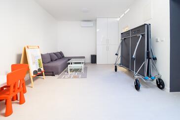 Casa può accogliere 6 ospiti. I letti sono disposti nelle camere da letto che sono 2, e nella camera di soggiorno, su 121m2. Per il piacere totale e il relax c'è il barbecue privato solo per gli ospiti di quest'alloggio. L'unità di alloggio prenotata non ha ne balcone ne terrazzo.