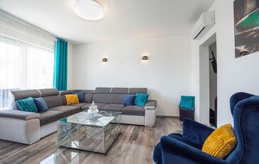 Appartamento può accogliere 8 ospiti. I letti sono disposti nelle camere da letto che sono 3, e nella camera di soggiorno, su 114m2. Gli ospiti hanno a disposizione il proprio terrazzo per godere nelle calde serate estive. Dall'appartamento si gode di una vista sul mare. Si può preparare il cibo utilizzando il barbecue comune.