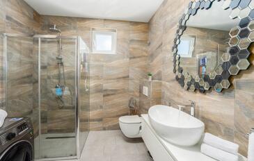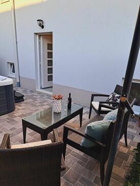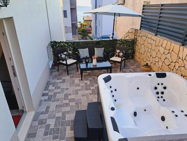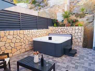 Appartamento può accogliere 8 ospiti. I letti sono disposti nelle camere da letto che sono 3, e nella camera di soggiorno, su 114m2. Gli ospiti hanno a disposizione il proprio terrazzo per godere nelle calde serate estive. Dall'appartamento si gode di una vista sul mare. Si può preparare il cibo utilizzando il barbecue comune.