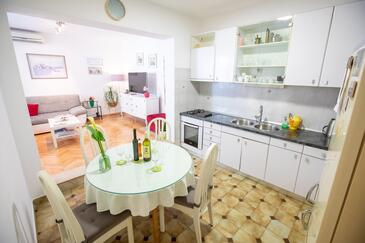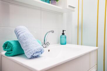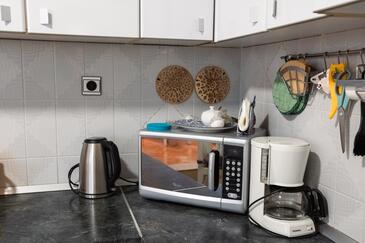 Appartamento può accogliere 6 ospiti. I letti sono disposti nelle camere da letto che sono 2, e nella camera di soggiorno, su 70m2. Gli ospiti hanno a disposizione il proprio balcone per godere delle calde serate estive. Dall'appartamento si gode di una vista sul mare. Si può preparare il cibo utilizzando il barbecue comune.