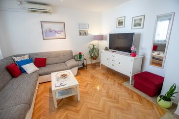 Appartamento può accogliere 6 ospiti. I letti sono disposti nelle camere da letto che sono 2, e nella camera di soggiorno, su 70m2. Gli ospiti hanno a disposizione il proprio balcone per godere delle calde serate estive. Dall'appartamento si gode di una vista sul mare. Si può preparare il cibo utilizzando il barbecue comune.
