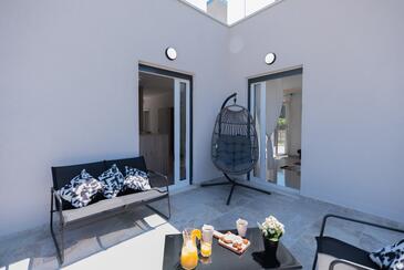 Appartamento può accogliere 6 ospiti. I letti sono disposti nelle camere da letto che sono 2, e nella camera di soggiorno, su 83m2. Gli ospiti hanno a disposizione il proprio terrazzo per godere nelle calde serate estive. Si può preparare il cibo utilizzando il barbecue comune.