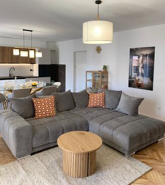 Appartamento può accogliere 5 ospiti. I letti sono disposti nelle camere da letto che sono 2, e nella camera di soggiorno, su 81m2. Gli ospiti hanno a disposizione il proprio terrazzo per godere nelle calde serate estive. Nell'unità di alloggio si possono portare gli animali domestici senza alcun pagamento supplementare.