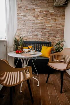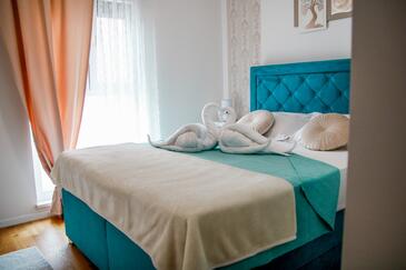 Appartamento può accogliere 4 ospiti. I letti sono disposti nelle camere da letto che sono 2, su 47m2. Gli ospiti hanno a disposizione il proprio balcone per godere delle calde serate estive. Dall'appartamento si gode di una vista sul mare.
