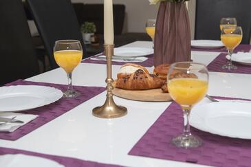 Casa può accogliere 10 ospiti. I letti sono disposti nelle camere da letto che sono 5, su 155m2. Gli ospiti hanno a disposizione il proprio terrazzo per godere nelle calde serate estive. Dalla casa si gode di una vista sul mare. Per il piacere totale e il relax c'è il barbecue privato solo per gli ospiti di quest'alloggio.