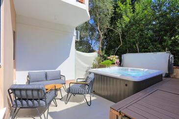 Appartamento può accogliere 5 ospiti. I letti sono disposti nelle camere da letto che sono 2, e nella camera di soggiorno, su 51m2. Gli ospiti hanno a disposizione il proprio terrazzo per godere nelle calde serate estive. Per il piacere totale e il relax c'è il barbecue privato solo per gli ospiti di quest'alloggio.