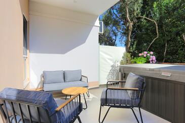 Appartamento può accogliere 5 ospiti. I letti sono disposti nelle camere da letto che sono 2, e nella camera di soggiorno, su 51m2. Gli ospiti hanno a disposizione il proprio terrazzo per godere nelle calde serate estive. Per il piacere totale e il relax c'è il barbecue privato solo per gli ospiti di quest'alloggio.