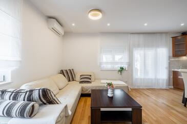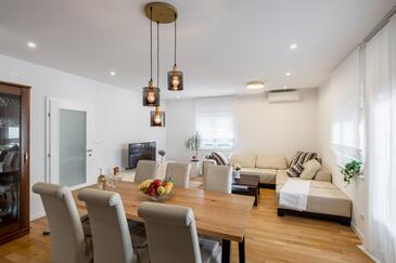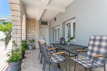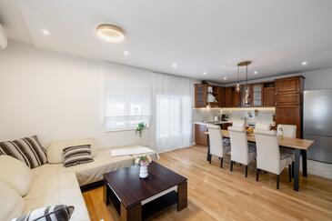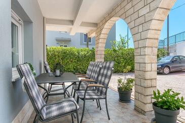 Appartamento può accogliere 5 ospiti. I letti sono disposti nelle camere da letto che sono 3, su 84m2. Gli ospiti hanno a disposizione il proprio terrazzo per godere nelle calde serate estive. Si può preparare il cibo utilizzando il barbecue comune.