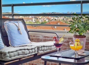 Appartamento può accogliere 4 ospiti. I letti sono disposti nelle camere da letto che sono 2, su 48m2. Gli ospiti hanno a disposizione il proprio terrazzo per godere nelle calde serate estive.