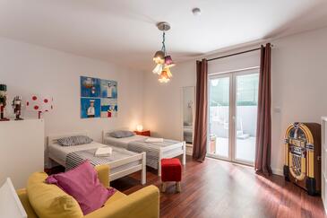 Appartamento può accogliere 4 ospiti. I letti sono disposti nelle camere da letto che sono 3, su 76m2. Gli ospiti hanno a disposizione il proprio terrazzo per godere nelle calde serate estive. Per il piacere totale e il relax c'è il barbecue privato solo per gli ospiti di quest'alloggio. Durante il soggiorno gli ospiti si possono rilassare nella piscina privata. Nell'unità di alloggio si possono portare gli animali domestici senza alcun pagamento supplementare.