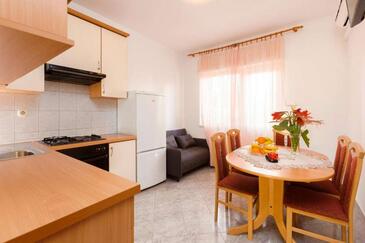 Appartamento può accogliere 4 ospiti. I letti sono disposti nelle camere da letto che sono 2, e nella camera di soggiorno, su 48m2. Gli ospiti hanno a disposizione il proprio balcone per godere delle calde serate estive. Dall'appartamento si gode di una vista sul mare.
