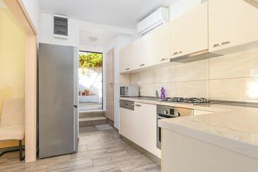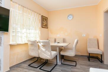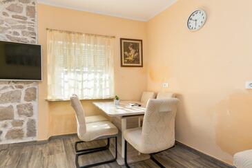 Appartamento può accogliere 5 ospiti. I letti sono disposti nelle camere da letto che sono 2, e nella camera di soggiorno, su 42m2. Gli ospiti hanno a disposizione il proprio terrazzo per godere nelle calde serate estive. Per il piacere totale e il relax c'è il barbecue privato solo per gli ospiti di quest'alloggio. Altri clienti o proprietari passano per terrazzo dell'unità d'alloggio prenotata.