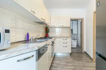 Appartamento può accogliere 5 ospiti. I letti sono disposti nelle camere da letto che sono 2, e nella camera di soggiorno, su 42m2. Gli ospiti hanno a disposizione il proprio terrazzo per godere nelle calde serate estive. Per il piacere totale e il relax c'è il barbecue privato solo per gli ospiti di quest'alloggio. Altri clienti o proprietari passano per terrazzo dell'unità d'alloggio prenotata.