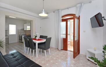 Appartamento può accogliere 8 ospiti. I letti sono disposti nelle camere da letto che sono 3, su 116m2. Gli ospiti hanno a disposizione il proprio terrazzo per godere nelle calde serate estive. Dall'appartamento si gode di una vista sul mare. Per il piacere totale e il relax c'è il barbecue privato solo per gli ospiti di quest'alloggio. Durante il soggiorno gli ospiti possono utilizzare la piscina comune.