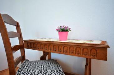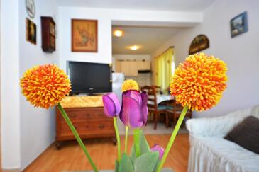 Appartamento può accogliere 5 ospiti. I letti sono disposti nelle camere da letto che sono 2, e nella camera di soggiorno, su 57m2. Gli ospiti hanno a disposizione il proprio balcone per godere delle calde serate estive. Dall'appartamento si gode di una vista sul mare. Si può preparare il cibo utilizzando il barbecue comune. Nell'unità di alloggio si possono portare gli animali domestici senza alcun pagamento supplementare.