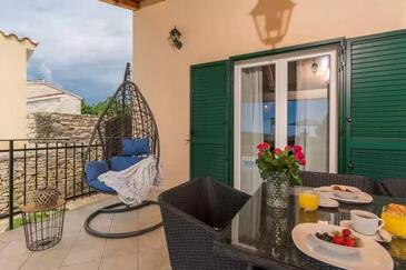 Casa può accogliere 4 ospiti. I letti sono disposti nelle camere da letto che sono 2, su 100m2. Gli ospiti hanno a disposizione il proprio terrazzo per godere nelle calde serate estive. Dalla casa si gode di una vista sul mare. Per il piacere totale e il relax c'è il barbecue privato solo per gli ospiti di quest'alloggio. Durante il soggiorno gli ospiti possono utilizzare la piscina comune.