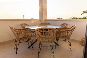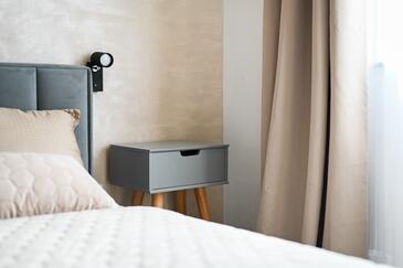 Casa può accogliere 8 ospiti. I letti sono disposti nelle camere da letto che sono 4, su 153m2. Gli ospiti hanno a disposizione il proprio terrazzo per godere nelle calde serate estive. Dalla casa si gode di una vista sul mare. Si può preparare il cibo utilizzando il barbecue comune. Durante il soggiorno gli ospiti si possono rilassare nella piscina privata. Arrivati nell'unità d'alloggio i clienti devono pagare un deposito (il prezzo è indicato sul sito).