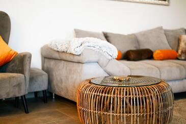 Casa può accogliere 8 ospiti. I letti sono disposti nelle camere da letto che sono 4, su 153m2. Gli ospiti hanno a disposizione il proprio terrazzo per godere nelle calde serate estive. Dalla casa si gode di una vista sul mare. Si può preparare il cibo utilizzando il barbecue comune. Durante il soggiorno gli ospiti si possono rilassare nella piscina privata. Arrivati nell'unità d'alloggio i clienti devono pagare un deposito (il prezzo è indicato sul sito).