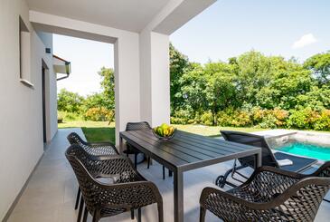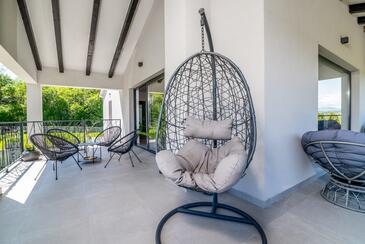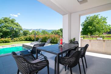 Casa può accogliere 8 ospiti. I letti sono disposti nelle camere da letto che sono 4, su 124m2. Gli ospiti hanno a disposizione il proprio terrazzo per godere nelle calde serate estive. Per il piacere totale e il relax c'è il barbecue privato solo per gli ospiti di quest'alloggio. Durante il soggiorno gli ospiti si possono rilassare nella piscina privata.