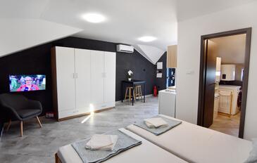 Appartamento può accogliere 5 ospiti. I letti sono disposti nelle camere da letto che sono 3, su 64m2. Gli ospiti hanno a disposizione il proprio terrazzo per godere nelle calde serate estive. Nell'unità di alloggio si possono portare gli animali domestici con un pagamento supplementare.