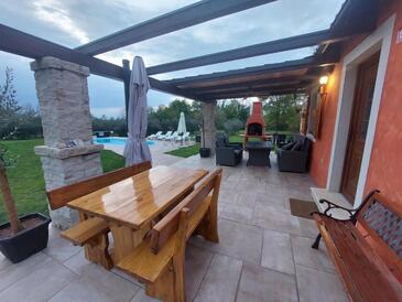 Casa può accogliere 4 ospiti. I letti sono disposti nelle camere da letto che sono 2, su 40m2. Gli ospiti hanno a disposizione il proprio terrazzo per godere nelle calde serate estive. Per il piacere totale e il relax c'è il barbecue privato solo per gli ospiti di quest'alloggio. Durante il soggiorno gli ospiti si possono rilassare nella piscina privata. Nell'unità di alloggio si possono portare gli animali domestici senza alcun pagamento supplementare.