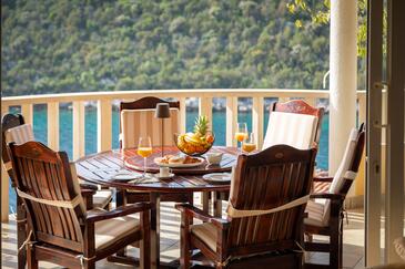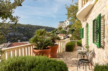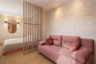 Casa può accogliere 7 ospiti. I letti sono disposti nelle camere da letto che sono 3, e nella camera di soggiorno, su 106m2. Gli ospiti hanno a disposizione il proprio terrazzo per godere nelle calde serate estive. Dalla casa si gode di una vista sul mare. Per il piacere totale e il relax c'è il barbecue privato solo per gli ospiti di quest'alloggio. Durante il soggiorno gli ospiti si possono rilassare nella piscina privata. Nell'unità di alloggio si possono portare gli animali domestici senza alcun pagamento supplementare. Arrivati nell'unità d'alloggio i clienti devono pagare un deposito (il prezzo è indicato sul sito).